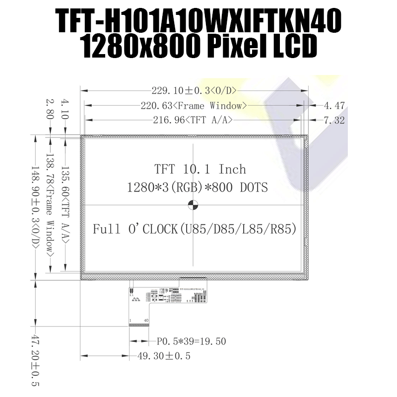 10寸TFT顯示屏|10.1寸TFT橫屏|1280*800IPS寬視角|LVDS接口|厚度5.0高亮度/TFT-H101A10WXIFTKN40